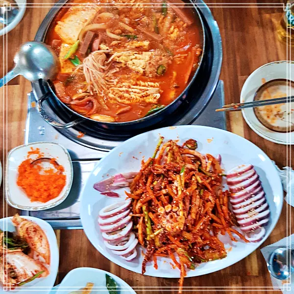 떡, 라면사리 무한리필, 무제한, 부대찌개, 모듬전 통오징어 숙회, 오징어 보쌈 맛집으로 추천이 많아 들려서 즐겨 봤는데 정말 이래서 생방송 오늘저녁 소개가 되었던 것이구나 싶고 굉장히 맛있고 맛 자체가 입 안에서 풍성하게 느껴집니다! 게다가 광명 전통 시장 맛집 직원분이 굉장히 친절하셔서 맛도 두배!! 잘 먹었습니다
