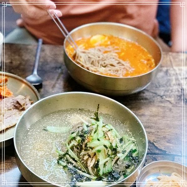 친구들이랑 신당, 중앙시장에 놀러왔는데 다른쪽 친구들이 6천원 비빔막국수, 9천원 황태회 막국수 뼛속까지 시원한 초저가 5천원 물막국수 먹으려면 이 곳이 정말 핫플이라고 다들 이야기해서 방문했는데 사장님이 너무친절 하시고 너무맛있어서 가격도 아깝지도 않고 재방문 의사 100% 있습니다ㅜㅜ 정말 잘먹고 갑니다